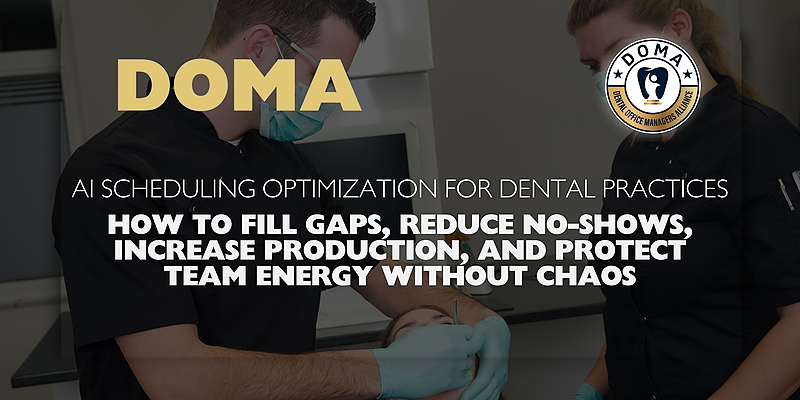 This eBook is designed for dental practice owners, office managers, and scheduling coordinators who want a more productive and predictable schedule. Attendees will learn how AI-driven scheduling tools can reduce no-shows, fill last-minute gaps, increase daily production, and balance provider workloads while protecting team energy and eliminating the chaos of reactive scheduling.